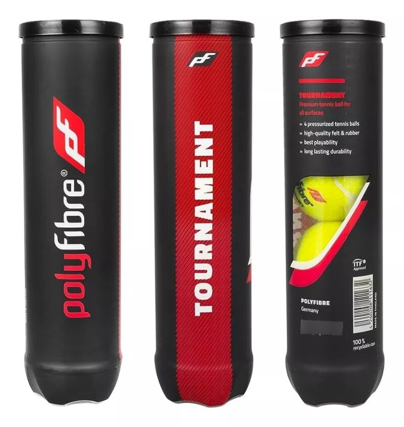 Bola de tênis premium para todas as superfícies. Feito de feltro e borracha de alta qualidade, melhor jogabilidade e durabilidade duradoura. A bola de torneio de polifibra é aprovada pela ITF.