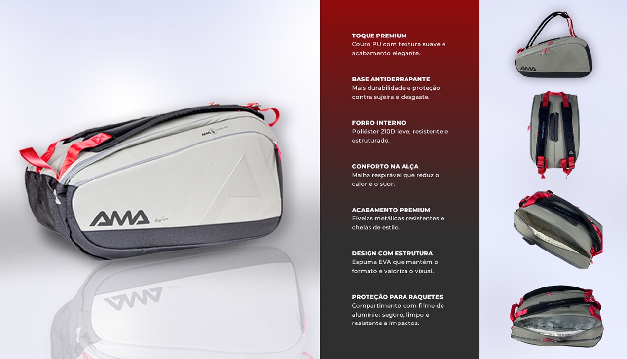 Raqueteira oficial do modelo Kronos da AMA Sport; ideal para quem quer guardar e transportar suas raquetes de beach tennis com estilo e proteção.