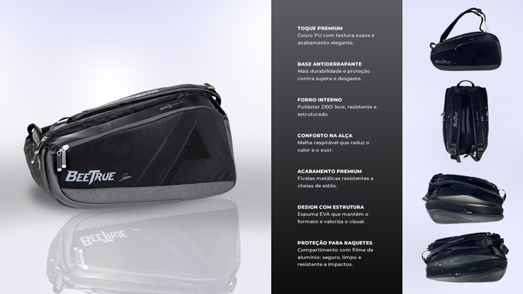 Raqueteira oficial do modelo PoisonBee da AMA Sport; ideal para quem quer guardar e transportar suas raquetes de beach tennis com estilo e proteção.